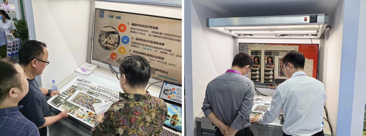 云易臻彩是杭華股份旗下一家專注于印刷流程色彩解決方案的創(chuàng)新型高科技公司,首次把印刷標(biāo)準(zhǔn)樣臺亮相展會,就吸引了大量觀眾眼球,大家紛紛走進數(shù)字云展臺,體驗了一場精彩絕倫的創(chuàng)新印刷之旅。